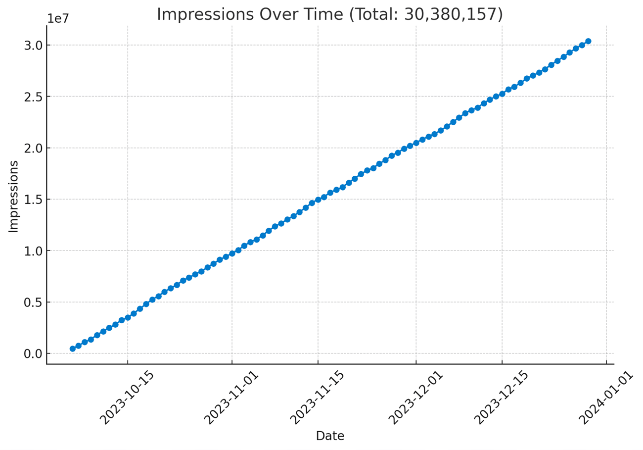 • Total Impressions: 30,380,157 impressions generated, significantly boosting online brand visibility.