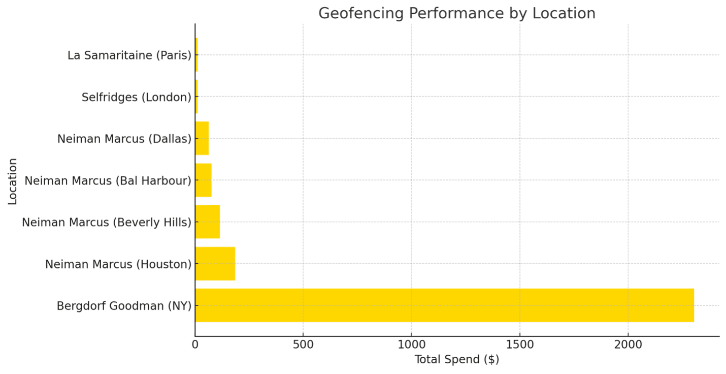 • Geofencing and Display Ads: To complement digital efforts, we deployed geofencing around key luxury retail locations and executed display ads that reinforced brand messaging. These ads targeted high-value areas where potential customers were likely to make purchases online, thus increasing e-commerce traffic.